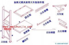 模具架结构 1、 组合装配、主要由柱片、导向槽、抽屉层、拉杆...